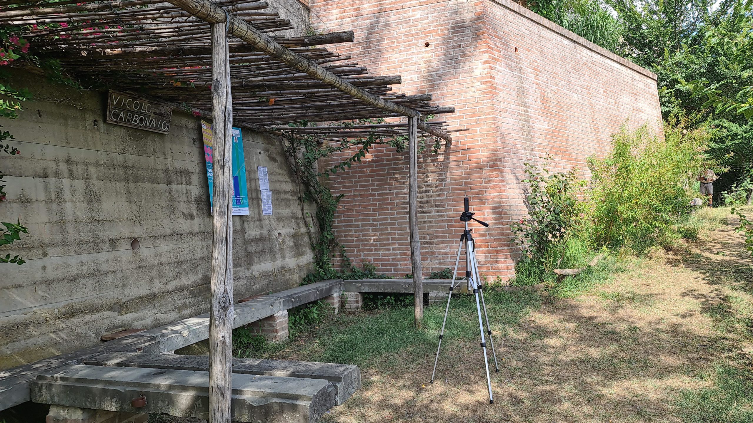 The next step after choosing the place and setting out the screenplay was that of making the videos in virtual reality, which enables us to reach the heart of the experience, feeling sensations and emotions that would otherwise be impossible to feel. Due to the limitations of the holiday season, and having to avoid small gatherings along the way, it was not easy to replicate the audience component into the video; this component would have had to coincide with the final user’s position, therefore we decided to take an alternative route. The shooting technique was also changed from the one indicated in the ToolBoox, as we preferred stationary shots working with the tripod of the 360 camera, instead of the dynamic shot using the selfie stick that we were advised to use; this was necessary to capture in a more balanced way the natural scenography and to get a better audio recording of the actors’ voices. The shooting and editing were made by Giovanni Golfarini.